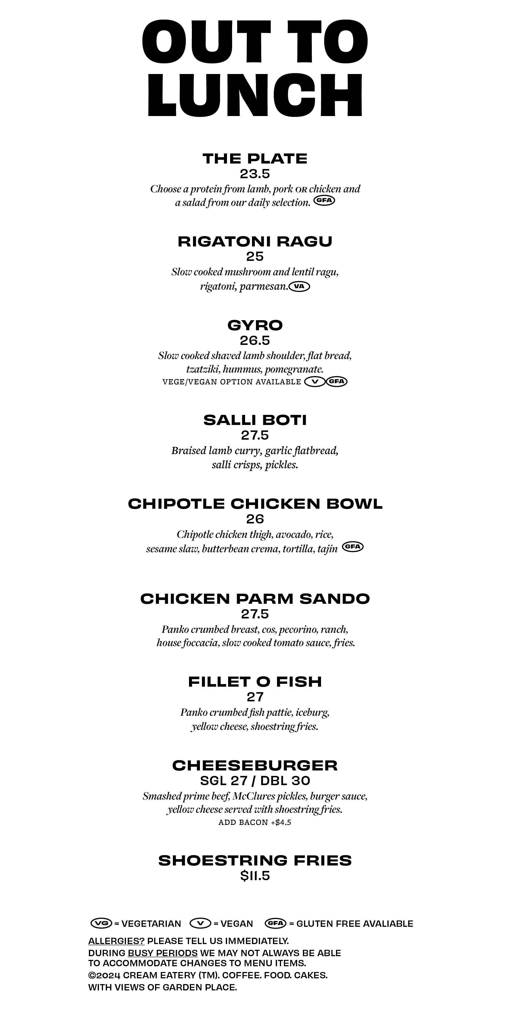 *Please note, the menu is subject to change at any time.
